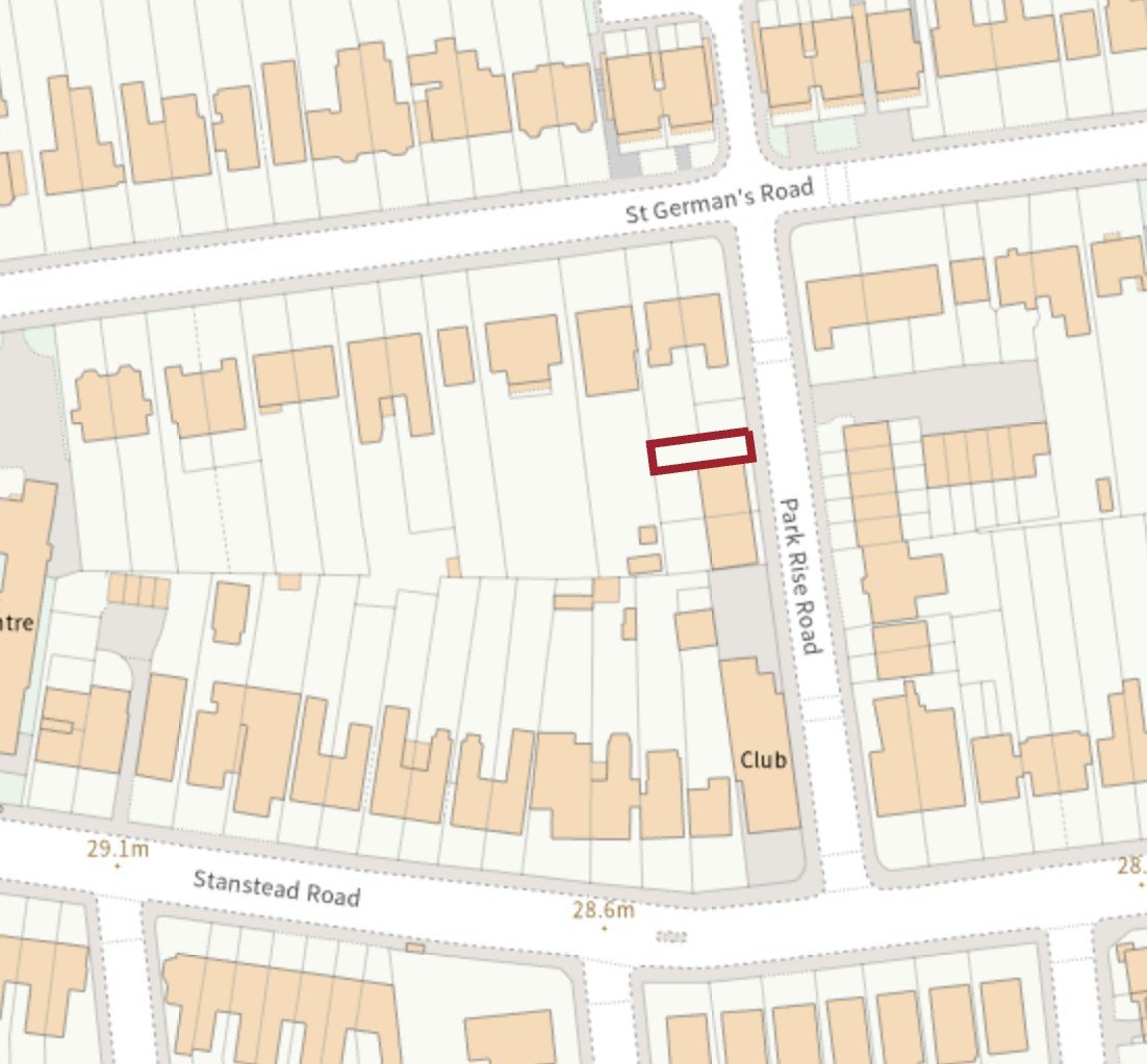 This parcel of land offers a strong opportunity for a small residential development, supported by a previous planning consent (DC/19/113222, dated 10 July 2020) for the construction of a two-storey plus basement two-bedroom house, with a roof terrace. Positioned on the corner of Park Rise Road and St Germans Road. The earlier approval demonstrates clear development potential and provides a useful precedent for scale and form.