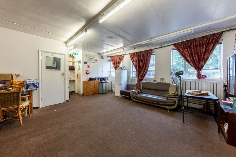 The property comprises a building arranged over ground and first floor with access via the sliding concertina shutter into the main warehouse, separate to the personnel entrance. The warehouse is currently occupied as a place of worship but will be cleared and sold with vacant possession.