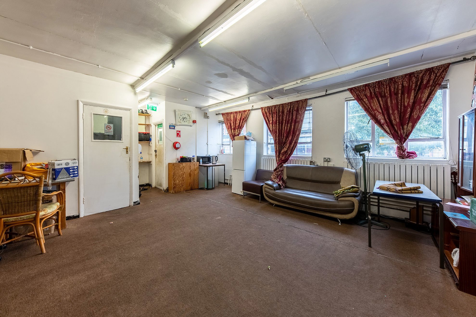 The property comprises a building arranged over ground and first floor with access via the sliding concertina shutter into the main warehouse, separate to the personnel entrance. The warehouse is currently occupied as a place of worship but will be cleared and sold with vacant possession.