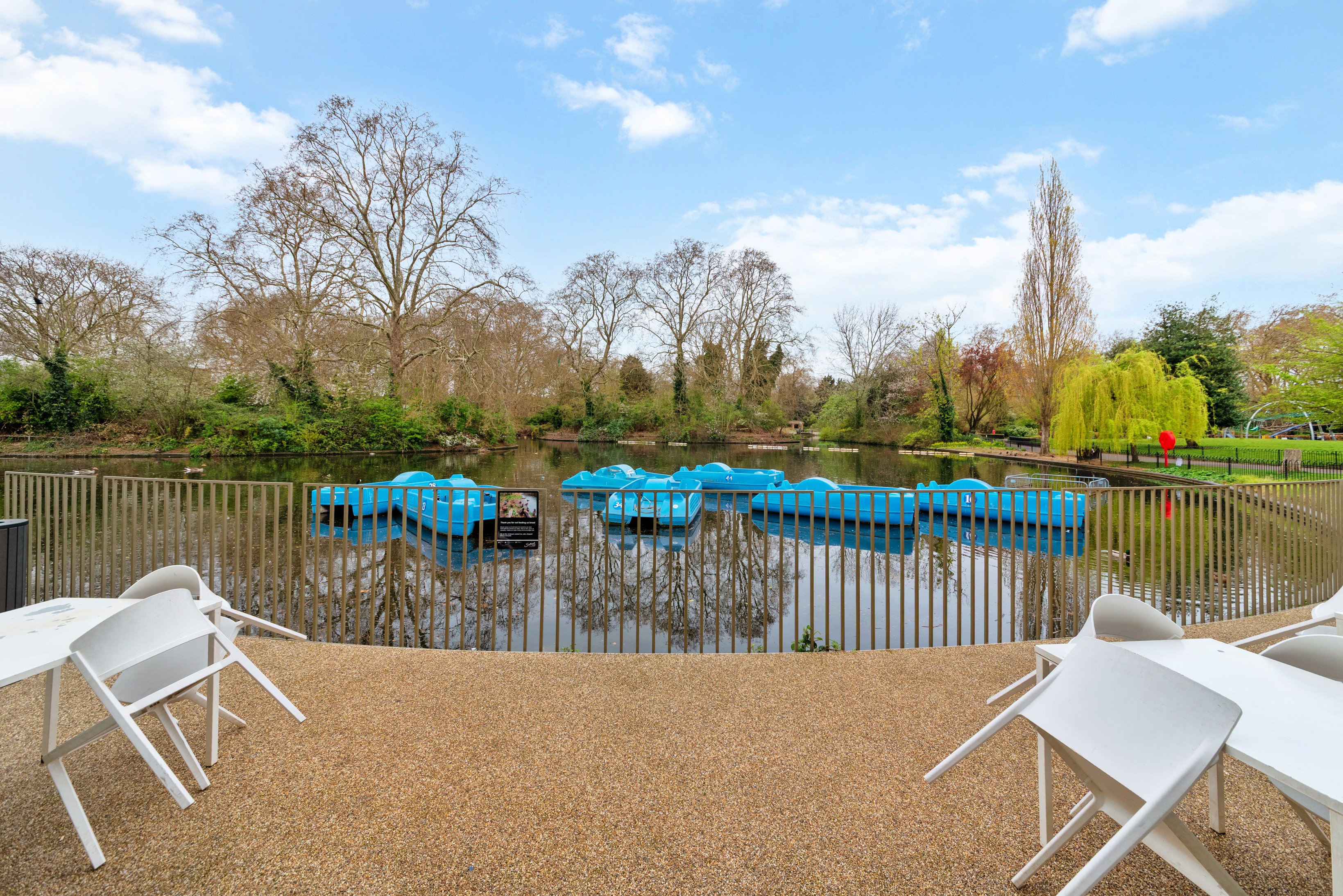 Externally, there is a terrace seating area directly fronting the water, offering additional covers.