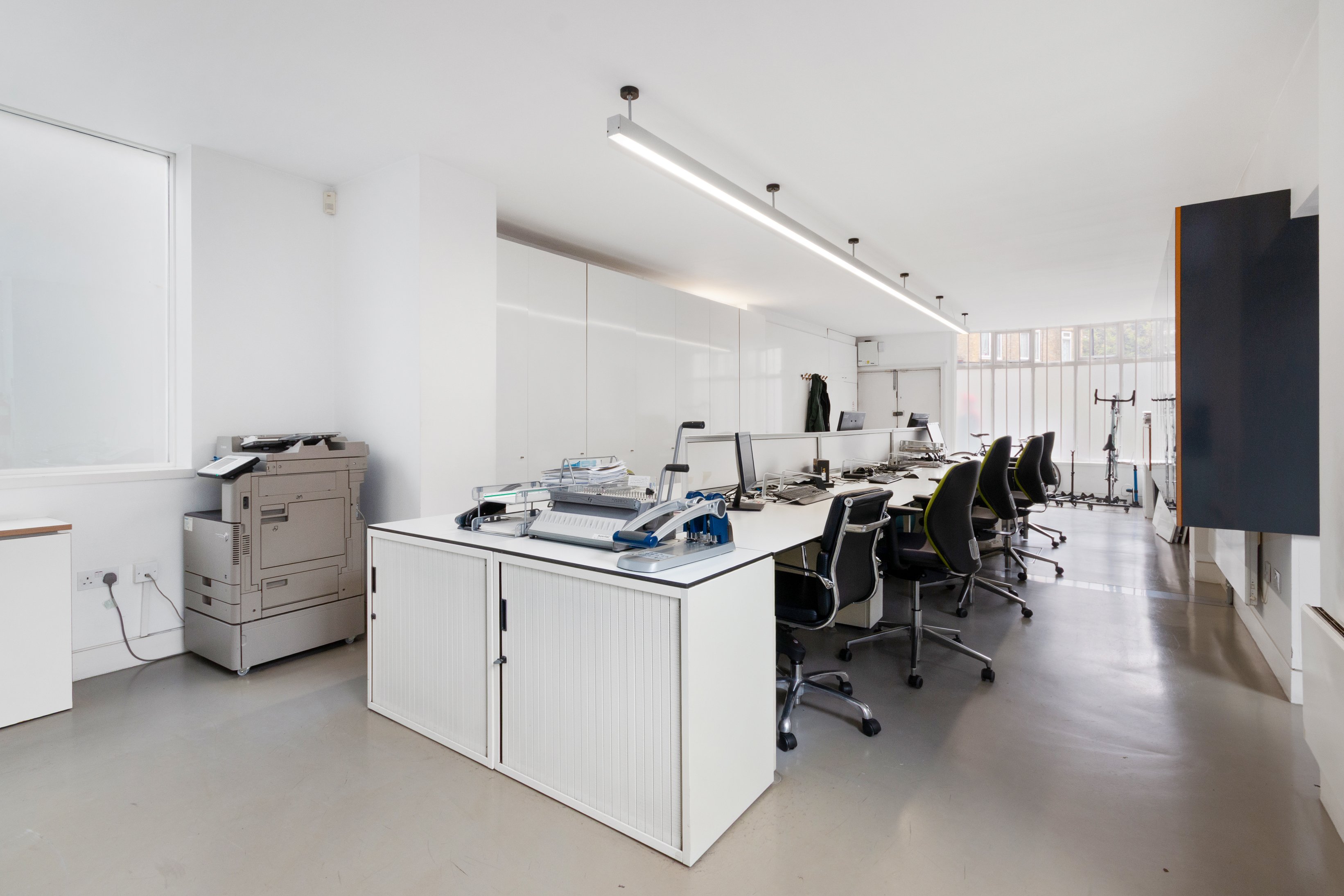 Available immediately on a new lease from the landlord, this office. Situated on the ground floor the space opens to a large open-plan space and two separate offices/meeting rooms. Other features include kitchenette and wc/shower, resin flooring, led lighting and natural light on two sides.