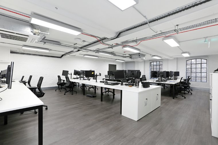 The available office space is located on the first floor of a converted warehouse. It features five primarily open-plan spaces, including a reception/meeting room area, three open-plan office spaces, and a kitchen/breakout area. The unit is arranged in a 'U' shape around the core of the building, providing flexibility in usage as there are multiple entrances to the units, ensuring easy access for staff and clients alike. The office also features, wooden flooring, air conditioning, exposed brickwork, cast iron pillars, and metal-framed windows offer views of Mill Street, adding to the aesthetic appeal of the space. The lease will be granted on an assignment/sublet of the current lease or a new lease to be granted by the landlord.
