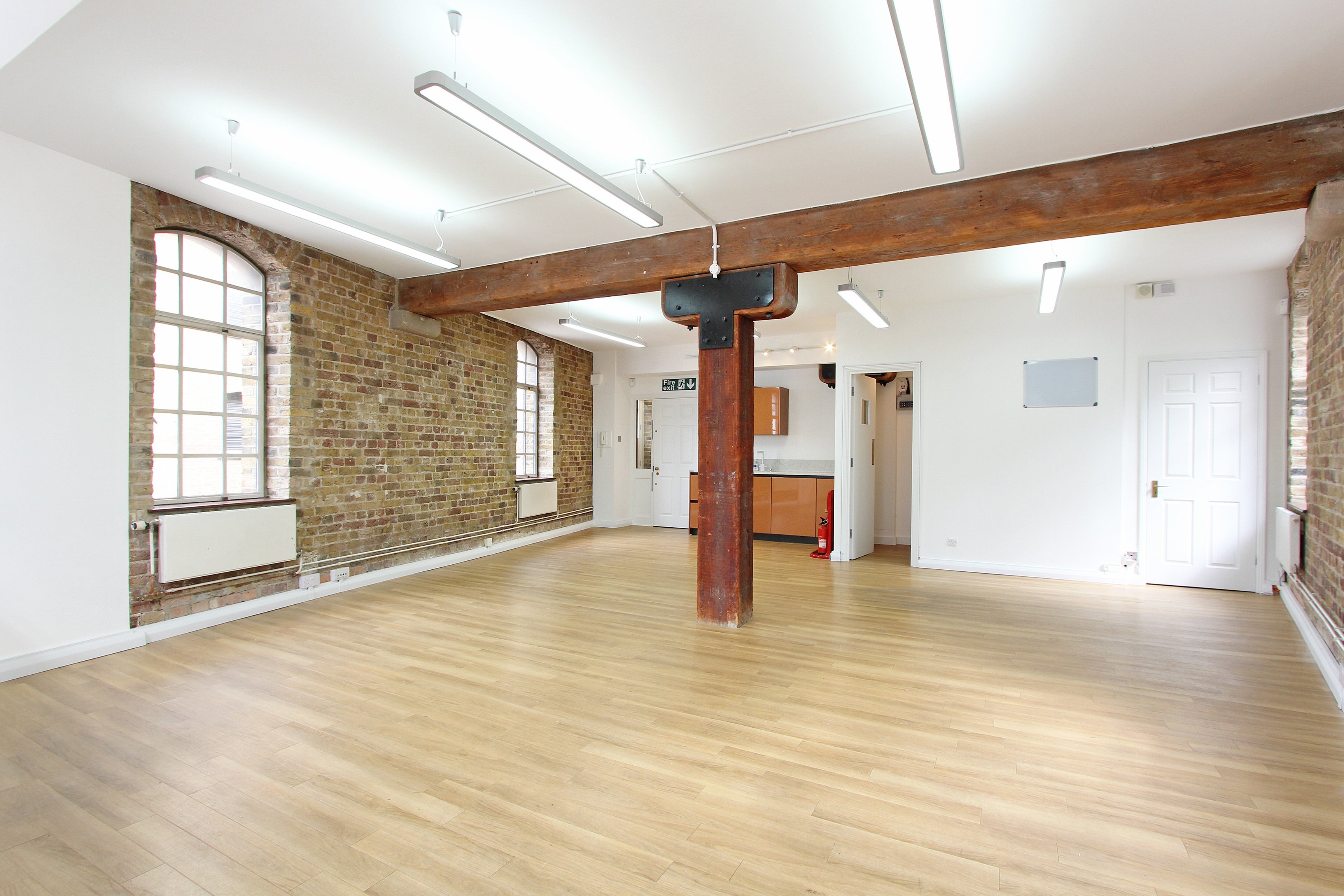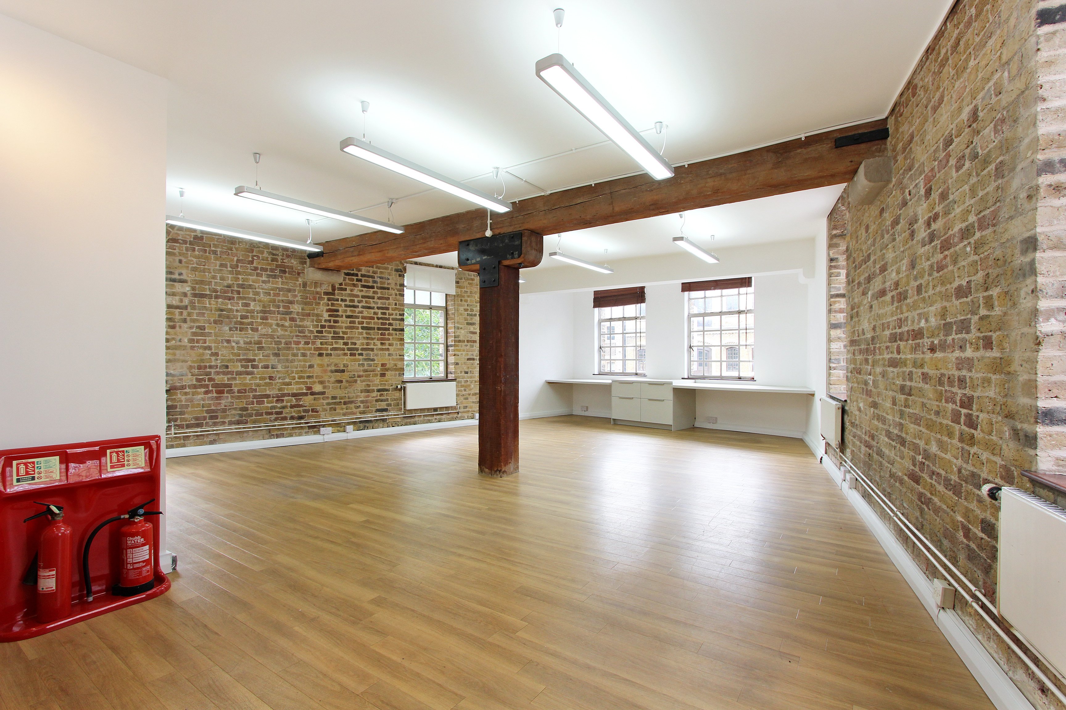 The property comprises self contained offices on the first floor of this stock brick-built listed Victorian wharf, which was substantially rebuilt in 1986 as professional office suites. The space is open plan with perimeter cabling, windows on 3 sides, exposed brickwork, exposed beams, wood effect vinyl flooring, and views of St Saviours Dock.