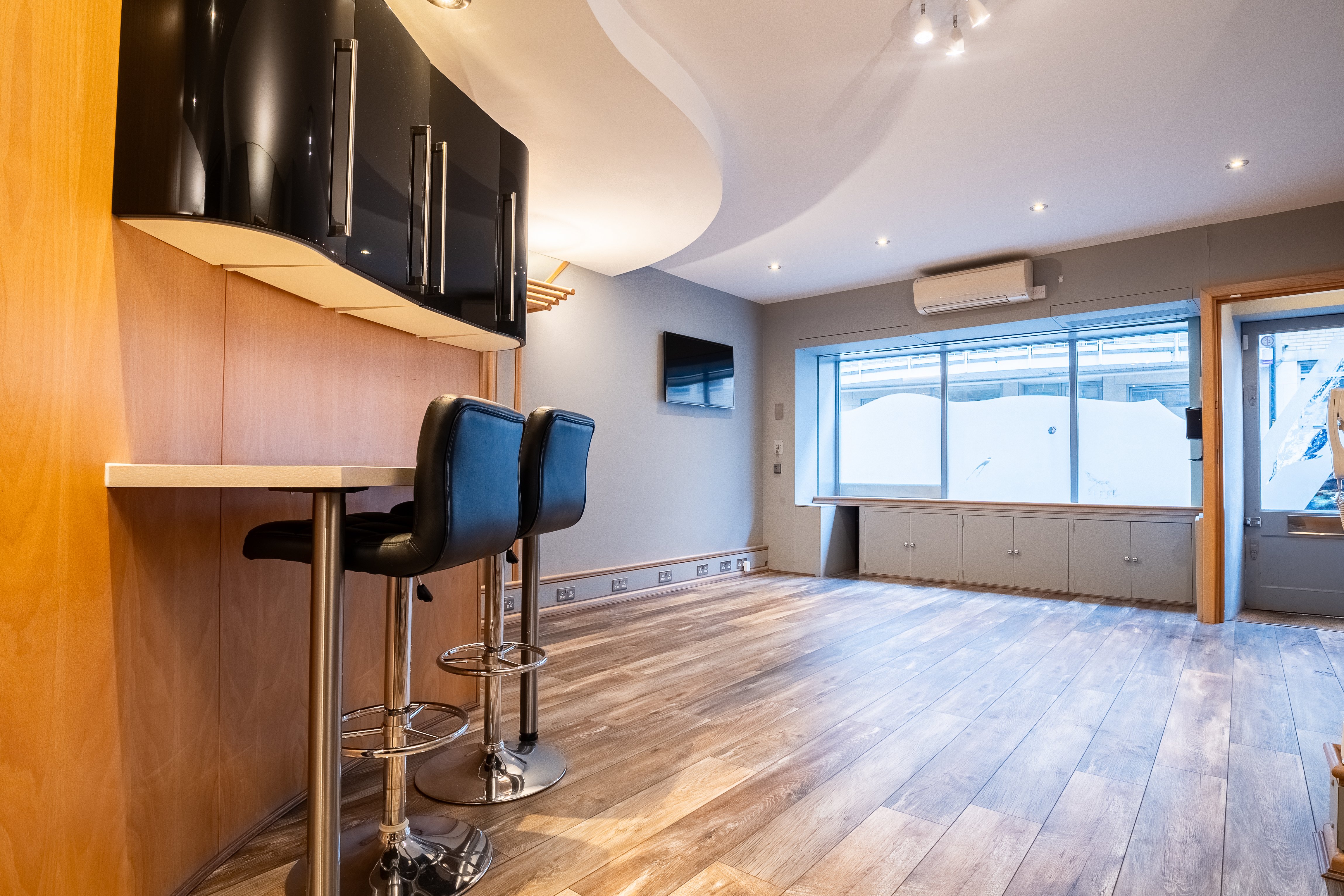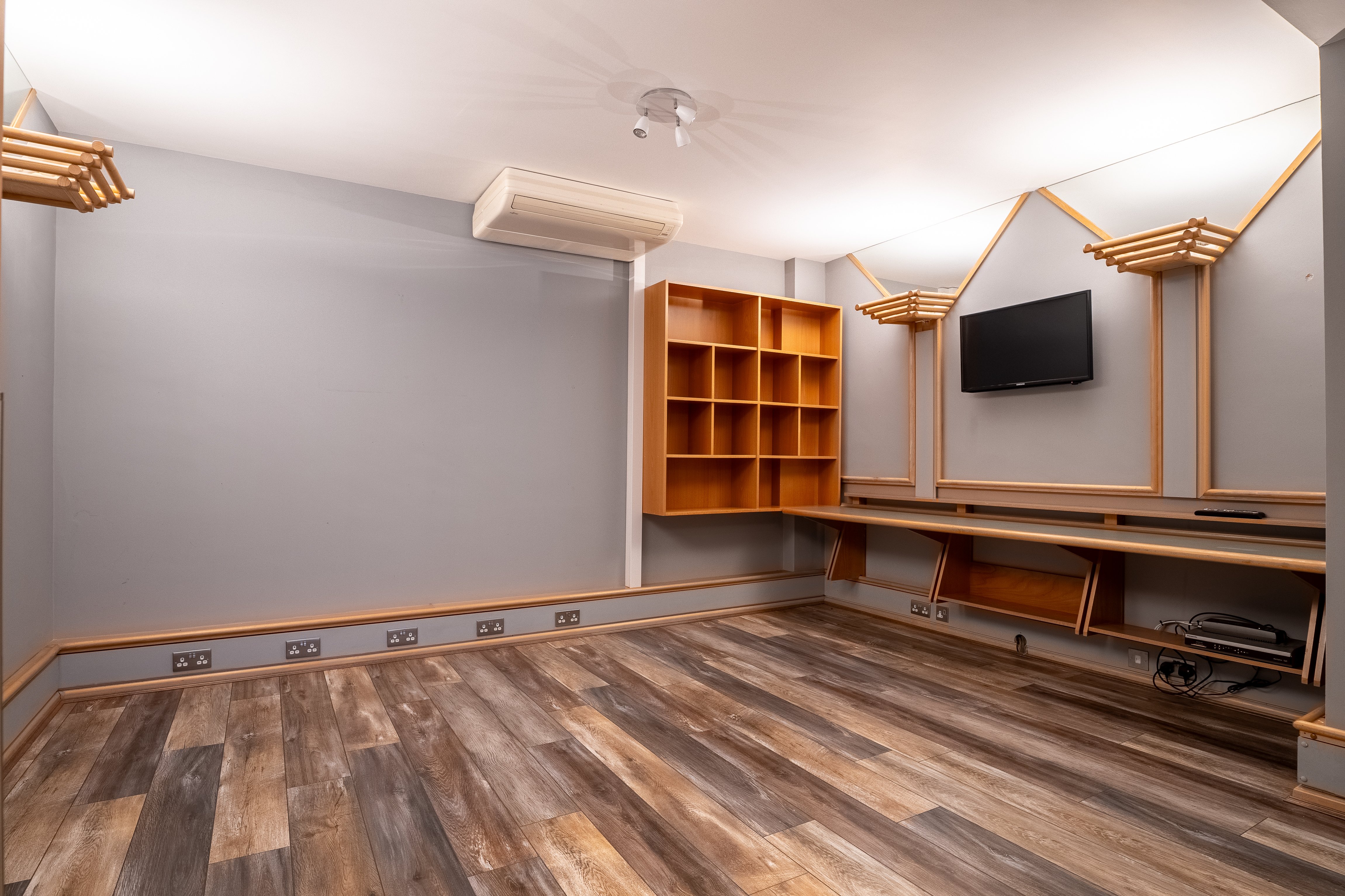 This purpose-built commercial space is situated on the ground floor of a mixed-use building. The unit is self-contained and features a semi-open-plan layout, with the flexibility to partition the rear section. It is versatile and has previously been used for various purposes, including a recording studio and an office. The unit comes equipped with air-conditioning, a WC, perimeter trunking, roller shutters, and built-to-purpose furniture. Available immediately. VAT is not applicable.