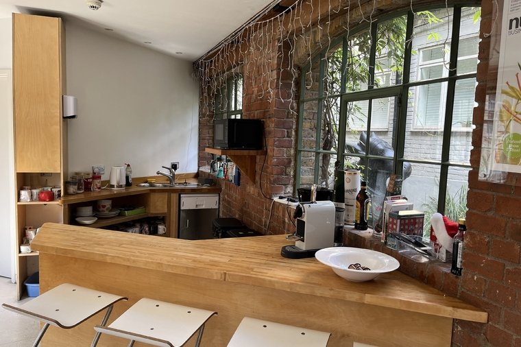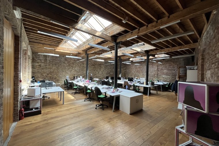 This character self-contained office is on the ground floor of this converted warehouse within a gated well-maintained courtyard. Located in the Tanneries, off Bermondsey Street. The space provides an open-plan office area, two meeting rooms, a reception/breakout area, a conference/boardroom and store room, a kitchenette, and two toilets. The space includes wooden flooring, cast iron columns, natural light from the courtyard and light well, exposed brickwork, strip lighting, and perimeter trunking. Occupants have access to a communal roof terrace.