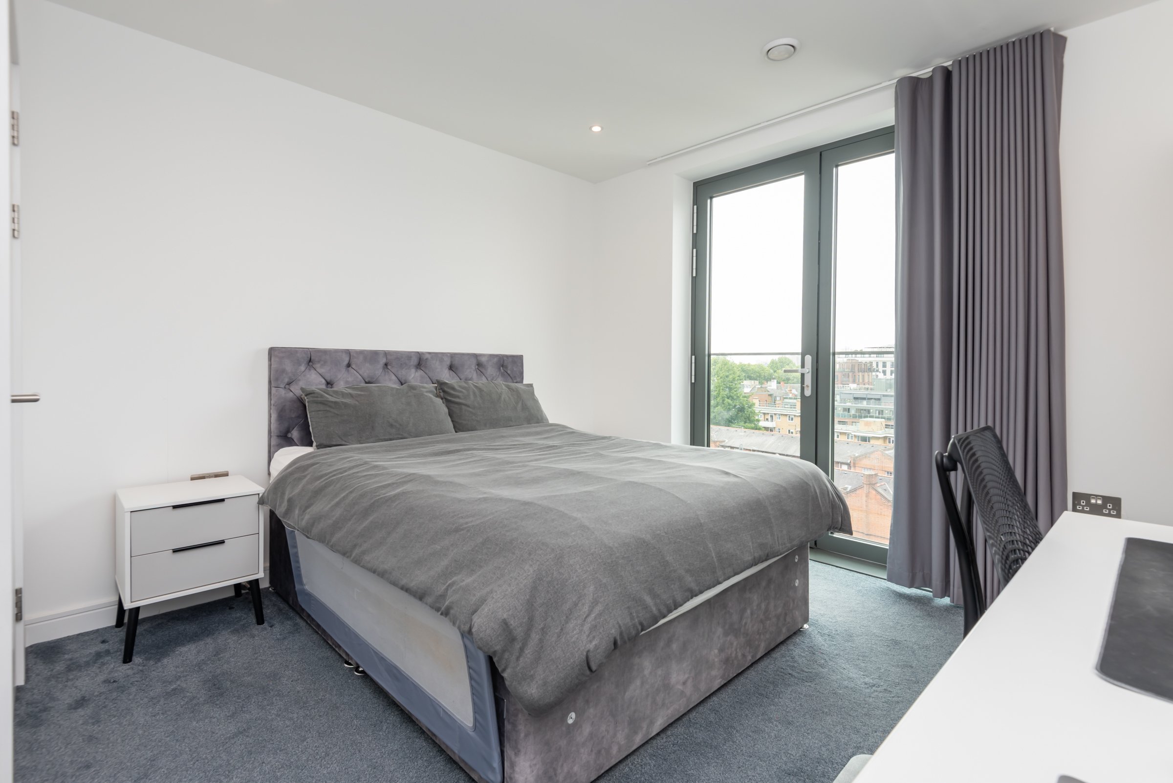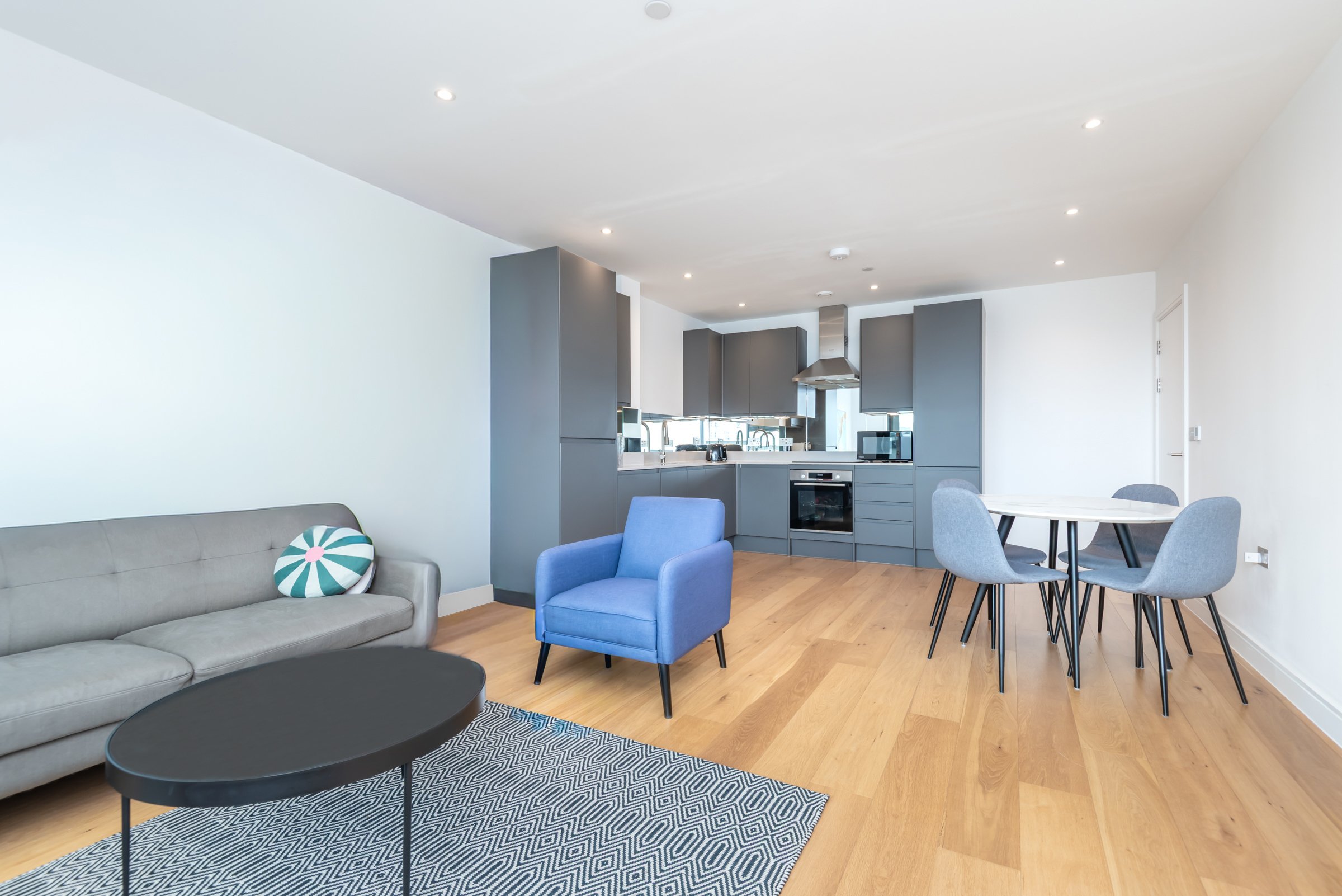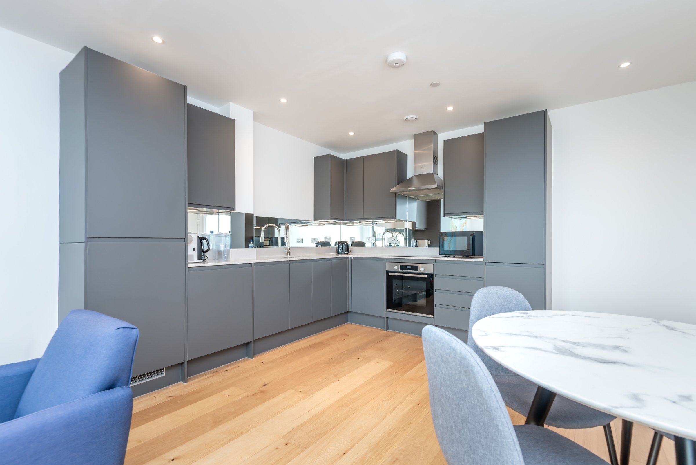 This two-bedroom property situated in the Colorama House development comes part furnished with two double beds, wardobes and drawers in each room and in the living area - dining table and chairs and a coffee table. The property consists of an open plan living and kitchen area which comes equipped with an intergrated fridge/freezer, dishwasher, as well as an extractor fan, there is ample storage for your items, two bathrooms including an en suite and in the storage cupbord you will find the property comes with a washing machine. There is also a balcony. The property benefits from underfloor heating throughout, the power in the property is electric only.