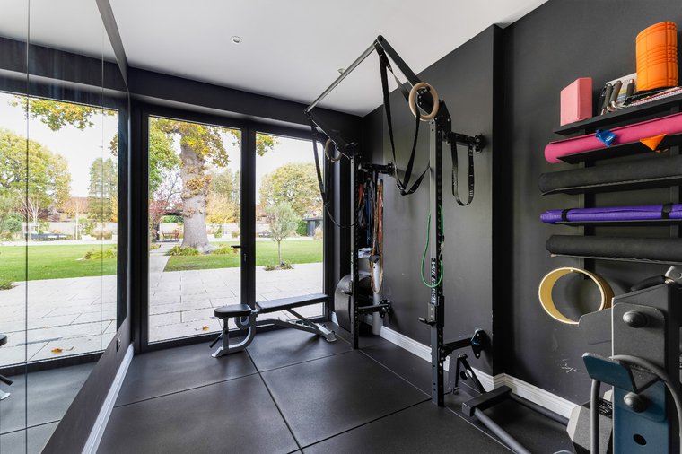 A cosy and warm family lounge enjoys views of the garden with large French doors opening straight into green space. A further functional study and games room offer a quieter space for a work-from-home opportunity. A well-equipped home gym area completes this striking main floor.