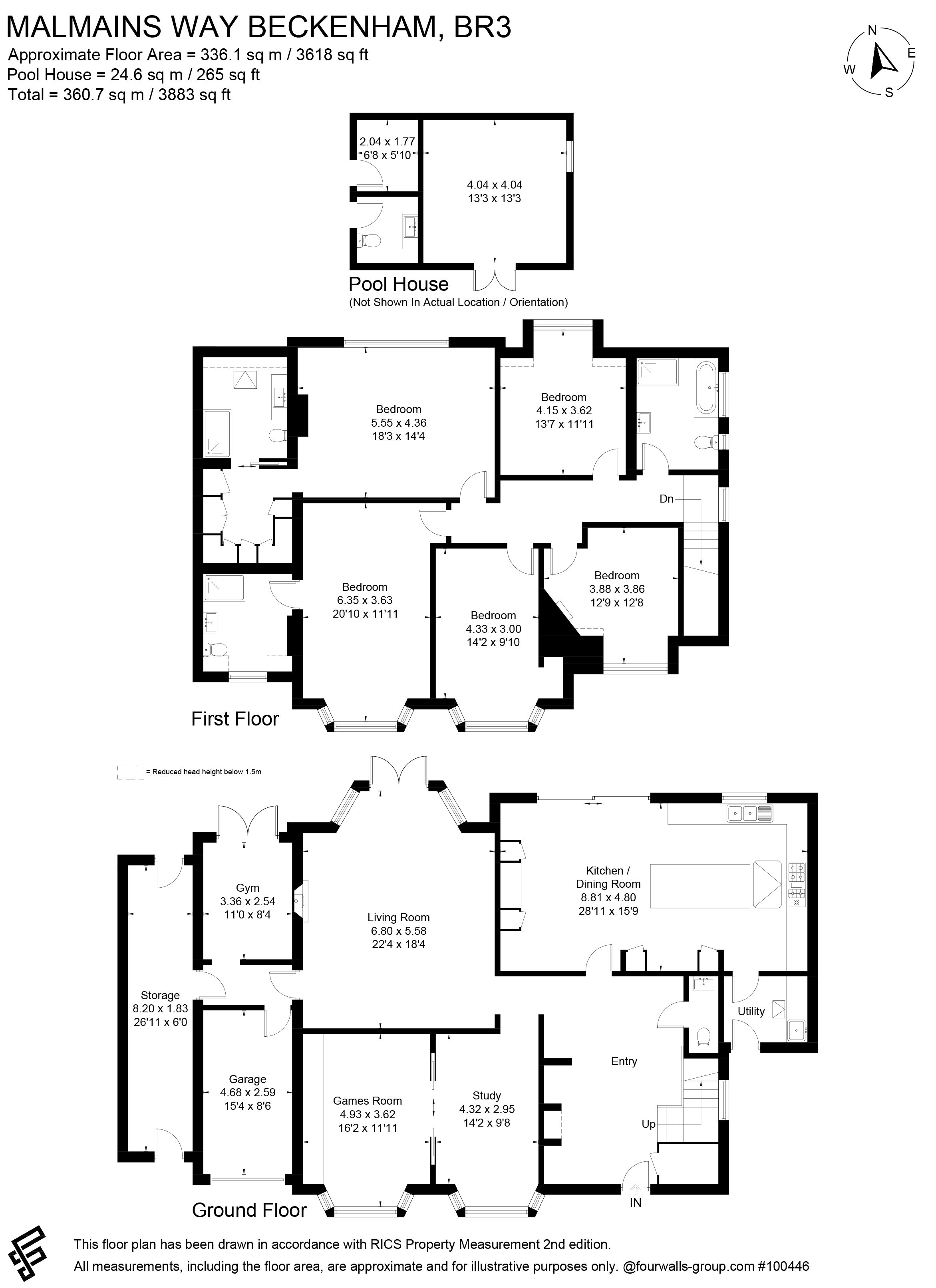 The first floor offers five large double-bedrooms, including two with ensuites, a vast family bathroom with oversized soaking tub and a walk-in shower. The luxurious master-bedroom has a walk-in wardrobe, stunning shower ensuite and spectacular views onto the rear garden.
