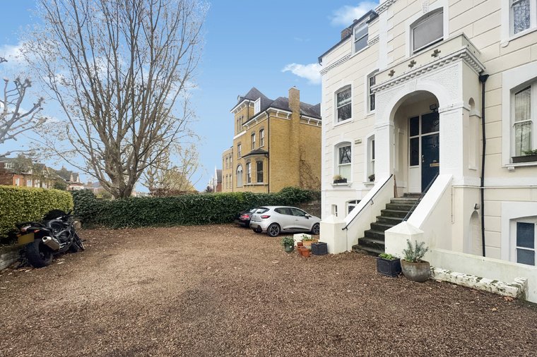 Residents have use of the front forecourt, providing convenient off-street parking, as well as a private entrance via the main communal doorway. The building sits within a peaceful residential setting, surrounded by similar grand period homes yet only moments from the amenities of Camberwell, Denmark Hill station, and nearby parks.