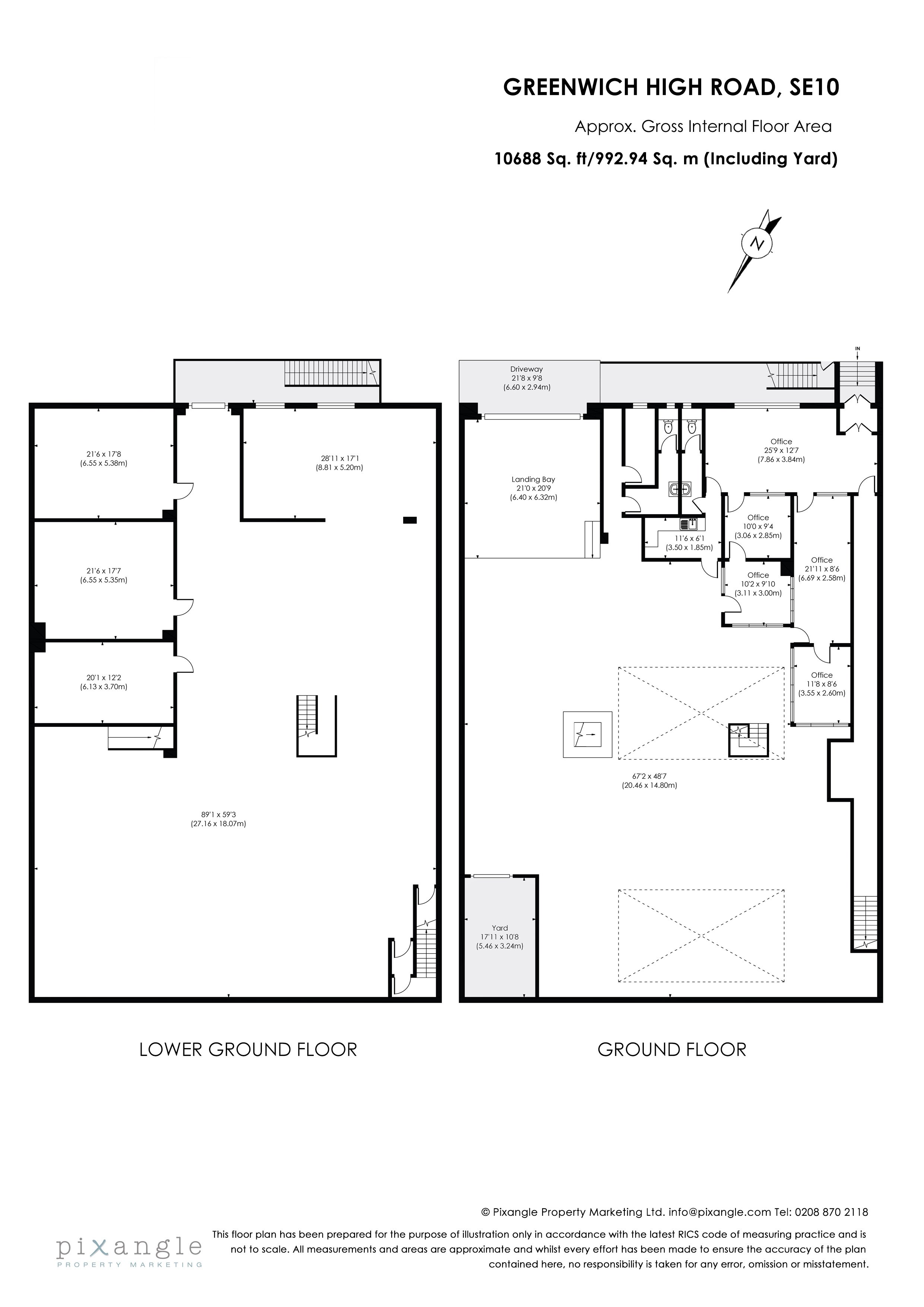 137 Greenwich High Road comprises a substantial two-storey warehouse building providing approximately 10,688 sq ft (992.94 sq m) of gross internal floor area, split across ground and lower ground floors. The property fronts directly onto Greenwich High Road and is accessed via a full-width roller shutter entrance, offering excellent vehicular access and loading capability rarely found in this part of South East London.